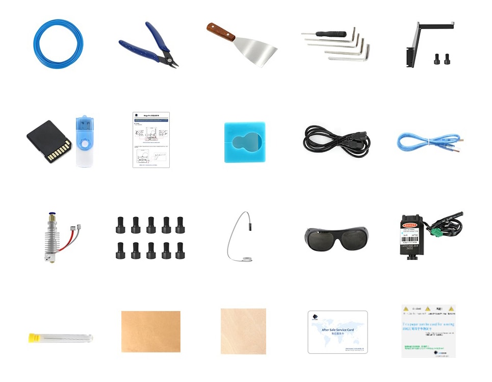 Комплект поставкиНабор инструментов, плоскогубцы, винт М5 * 8, скребок, считыватель карт, лазерная головка, SD - карта, руководство пользователя, защитные очки, шнур питания, USB - кабель, адаптер питания, модуль нивелирования, сервисная катрта