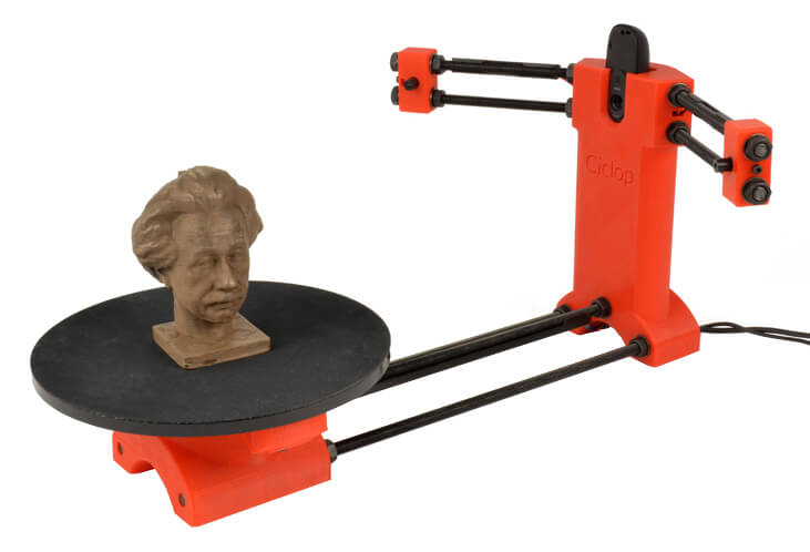 3D сканер Ciclop использует метод лазерного сканирования и оснащен поворотным столом. Поставляется в виден набора для сборки DIY, благодаря этому получается отличная цена. Также данный набор позиционируется как первый ваш сканер или 3д сканер для образования, чтоб понять не только как идет процесс сканирования, но и само устройство оборудования.