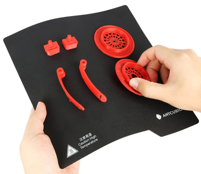 Рабочая поверхность подложки имеет специальное адгезионное покрытие. Благодаря ему первый слой модели надёжно закрепляется. Это помогает избежать внезапного отрыва и нарушения геометрии модели. После печати и остывания модель можно будет легко снять с подложки, используя тонкий шпатель.