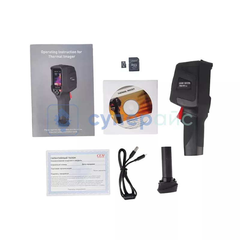 Комплектация | тепловизор CEM DT-979D - 1 шт USB-кабель - 1 шт аккумулятор - 1 шт диск с ПО - 1 шт micro SD-карта - 1 шт гарантийный талон - 1 шт сертификат соответствия - 1 шт руководство пользователя - 1 шт |
