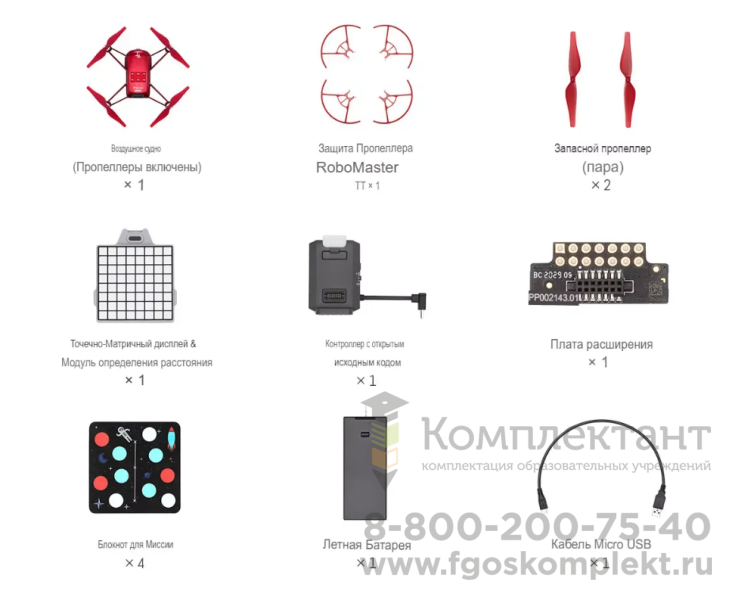 Комплектация квадрокоптера Robomaster Tello Talent (х10):