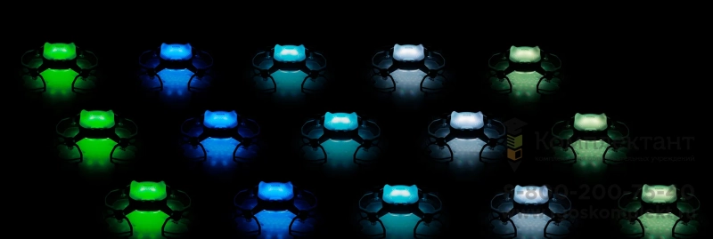 Модули позиционирования используются для точного определения положения дронов и нужно только продумать маршруты их перемещения над ковриком. В приложение LitebeeGo это можно сделать в групповом режиме “Swarm” для всех дронов, чтобы они не сталкивались друг с другом, и останется запрограммировать включение фонарей, чтобы получилось настоящее световое шоу!