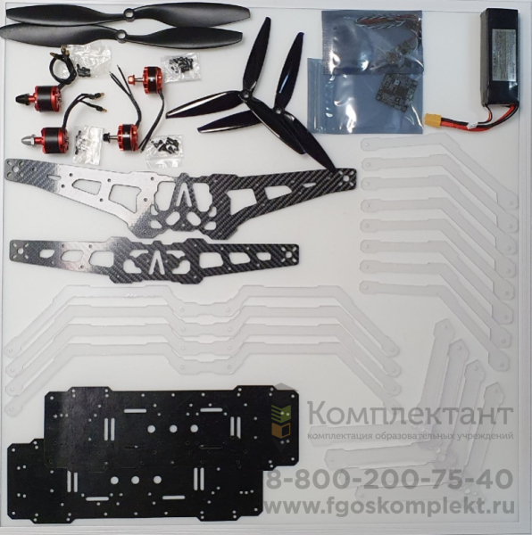 Ремкомплект состоит из базовой платы управления, комплекта воздушных винтов, комплекта деталей рамы, комплект защиты воздушных винтов, моторов.