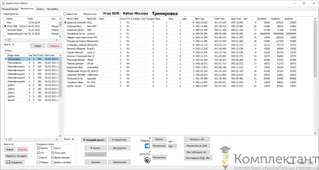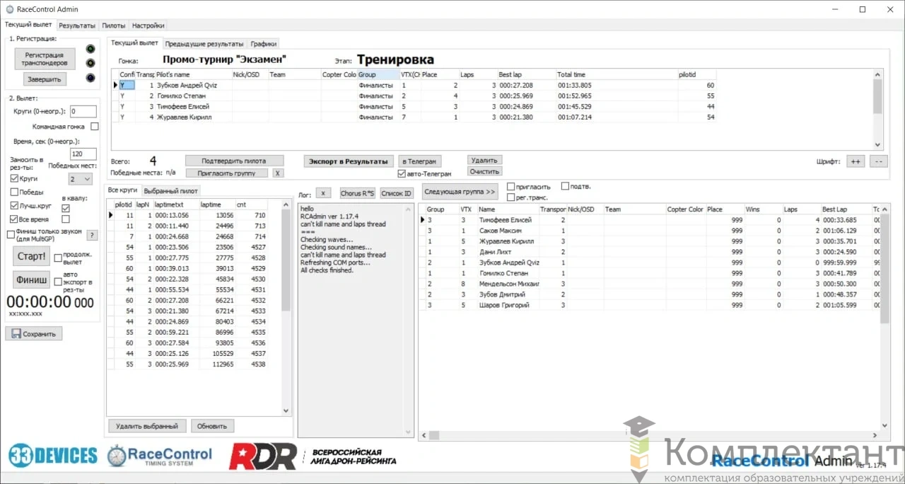 Система хронометража RaceControl была использована практически на всех значимых соревнованиях по дрон-рейсингу начиная с 2017 года (этапы Всероссийского Кубка, серия гонок FPVDudes для начинающих и про, отбор на Чемпионат Европы, Moscow City Games в Лужниках, Армия-2017, РостехДронФест 2019-2020, Экзамены RDR 2022-24, Игры Роспрофжел Фиджитал гонки дронов 2023-24 и так далее). Надежность проверена временем и практикой.