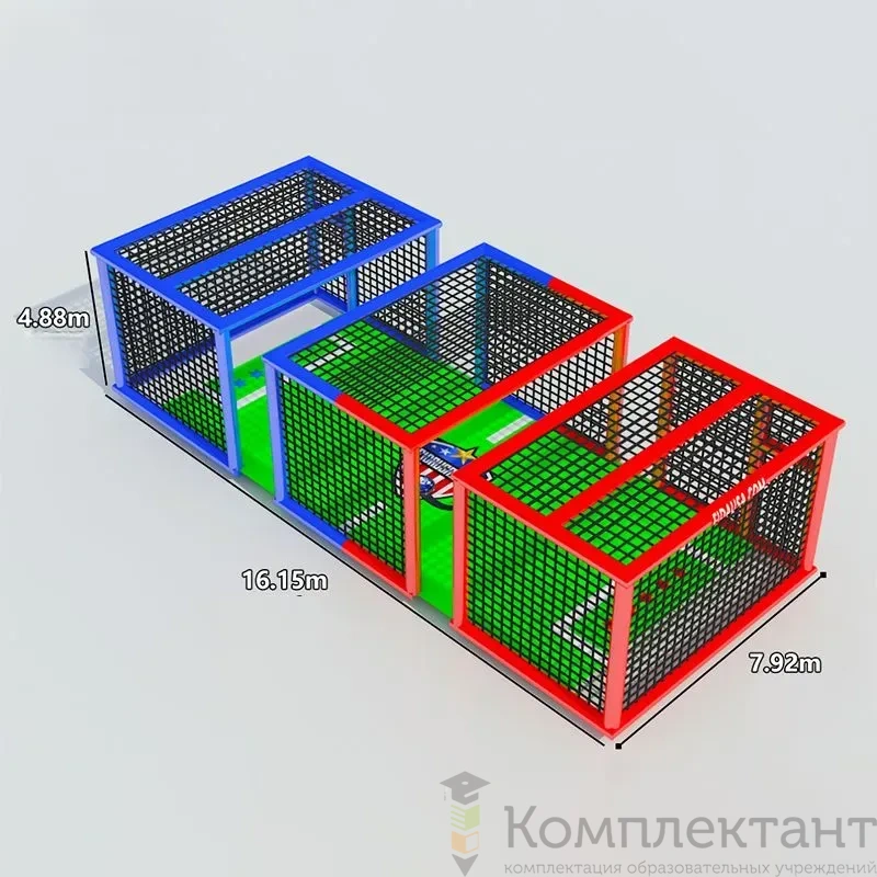 • Сетчатый куб имеет размеры 16.5м длина × 7.92м ширина × 4.88м высота (16.5мх7.92мх4.88м), которые соответствуют требованиям для проведения соревнований по дрон-футболу