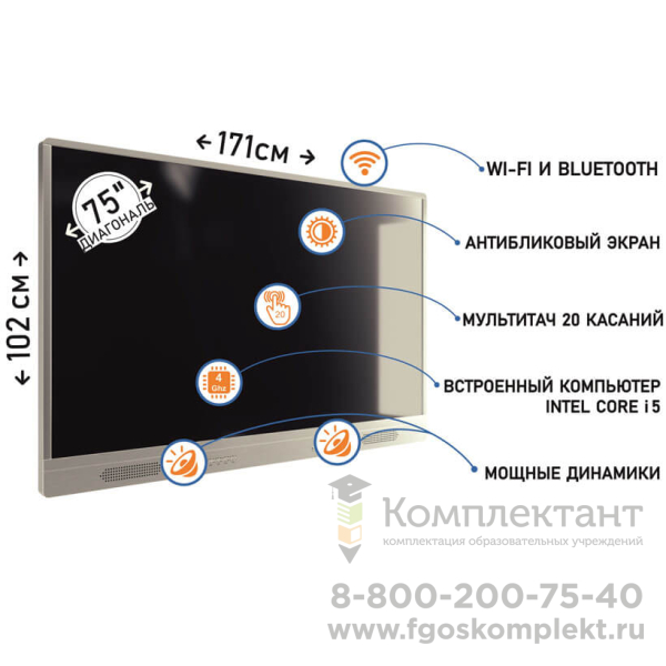 Кроме этого, интерактивная панель не нуждается в дополнительном обслуживании, как например, в проекторе приходится регулярно менять лампу. Интерактивная панель New Touch 75 - это «установил и забыл о всех проблемах».