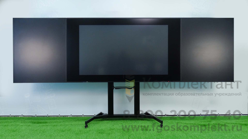 Размер Блэкборда составляет 420 см по ширине и 120 см по высоте. В центральной части располагается интерактивная панель с меловой поверхностью, а по бокам две магнитно-меловые секции, которые могут складываться к центру.