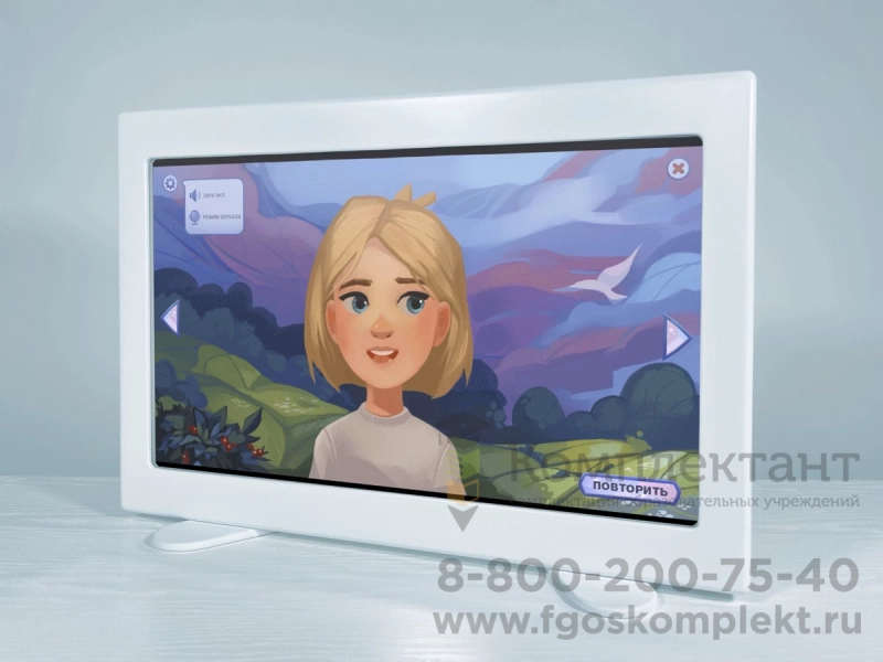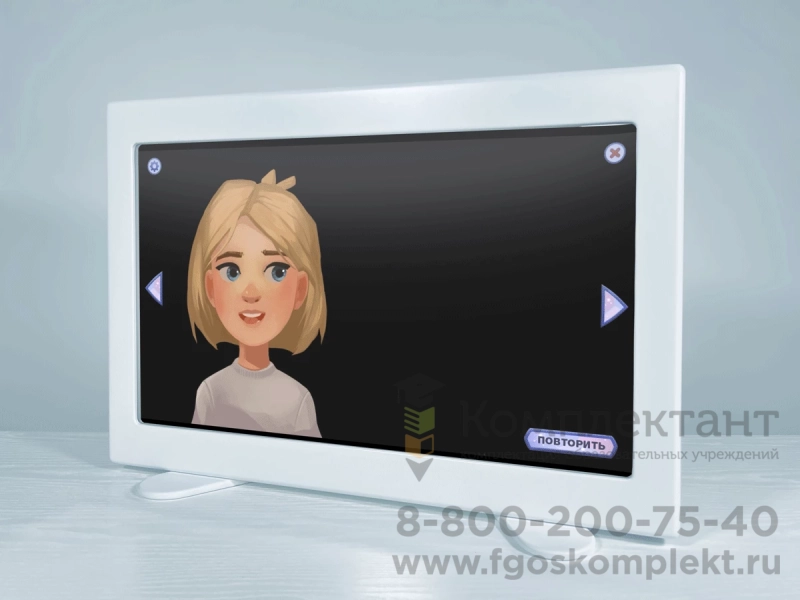 Благодаря тому, что экран имеет уникальные зеркальные свойства, обучающийся видит и задание, которое надо выполнить, и то, как у него это получается. Особенно это пригодится при работе с инновационным интерактивным комплексом по артикуляционной гимнастике.