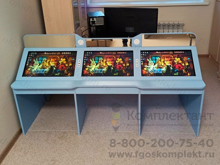 Логопедический стол "Лого" - профессиональное решение для психологов и логопедов, позволяющее на самом высоком уровне проводить как индивидуальную, так групповую работу с детьми с речевыми расстройствами. Работать за ним будет одинаково удобно и педагогу и ребенку. Для детей установлены сенсорные экраны, а для педагога предусмотрен более классический способ управления по средствам клавиатуры и мыши.