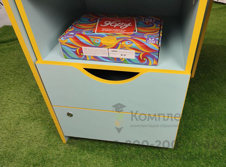 При изготовлении используются только качественные материалы и комплектующие, где все петли и направляющие оснащены доводчиками. Стол оборудован мобильной тумбой для хранения всех комплектующих. Он спроектирован с учётом ФГОС и пожеланий практикующих специалистов.