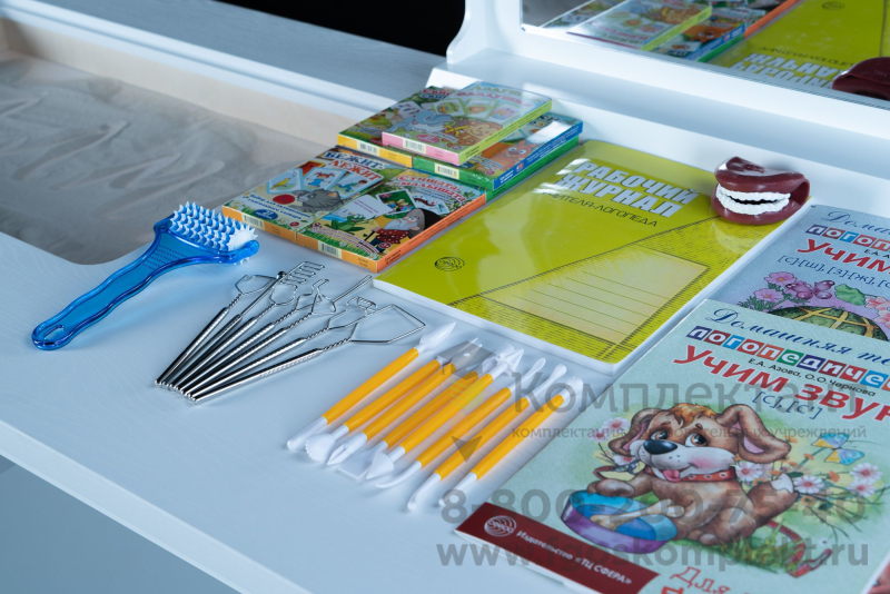 Профессиональный стол специалиста логопеда Logo Mini единственный в своем роде по наполнению и встроенному функционалу. Были учтены пожелания специалистов для организации эффективной работы с ребенком.