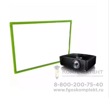 Интерактивная доска, настенное крепление для доски, видеопроектор SVGA, 4000 Лм, usb кабель, длина 5 м, безбатарейный стилус, 2 шт, телескопическая указка, usb-флешка с программным обеспечением, гарантийный талон