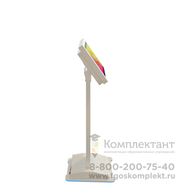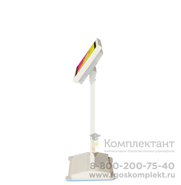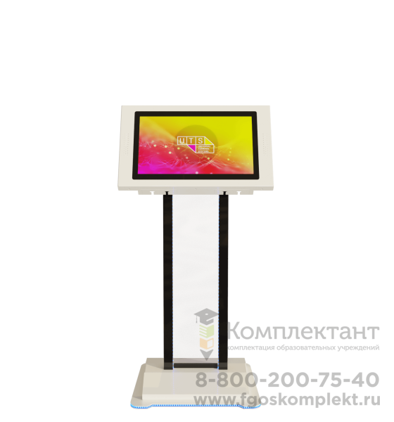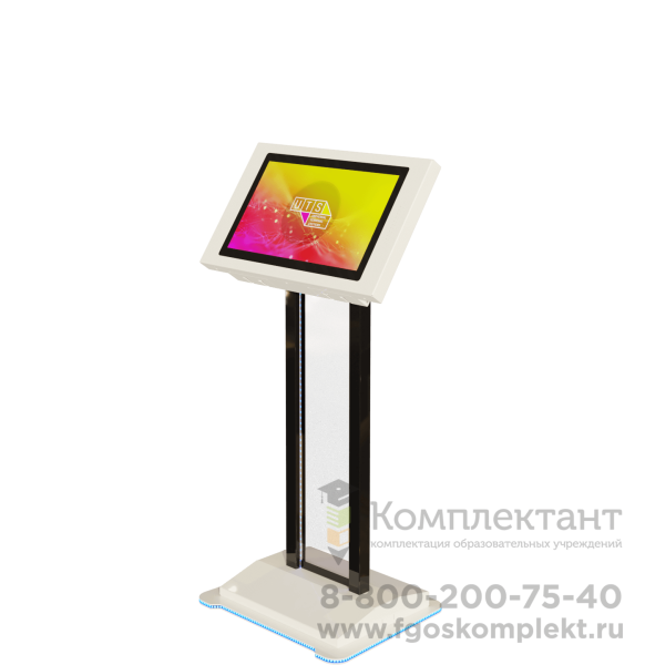 Киоск выглядит очень современно. В  его основание встроена подсветка из светодиодных полос, которая дает возможность быть более привлекательным для посетителей Вашего учреждения.