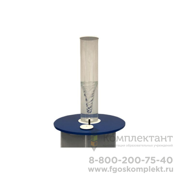 Интерактивный экспонат 11 демонстрирует образование водной воронки при круговом движении жидкости в вертикальном цилиндрическом сосуде. Посетитель вращает ручку, тем самым передавая вращательное движение внутрь цилиндрического сосуда, и наблюдает водную воронку.