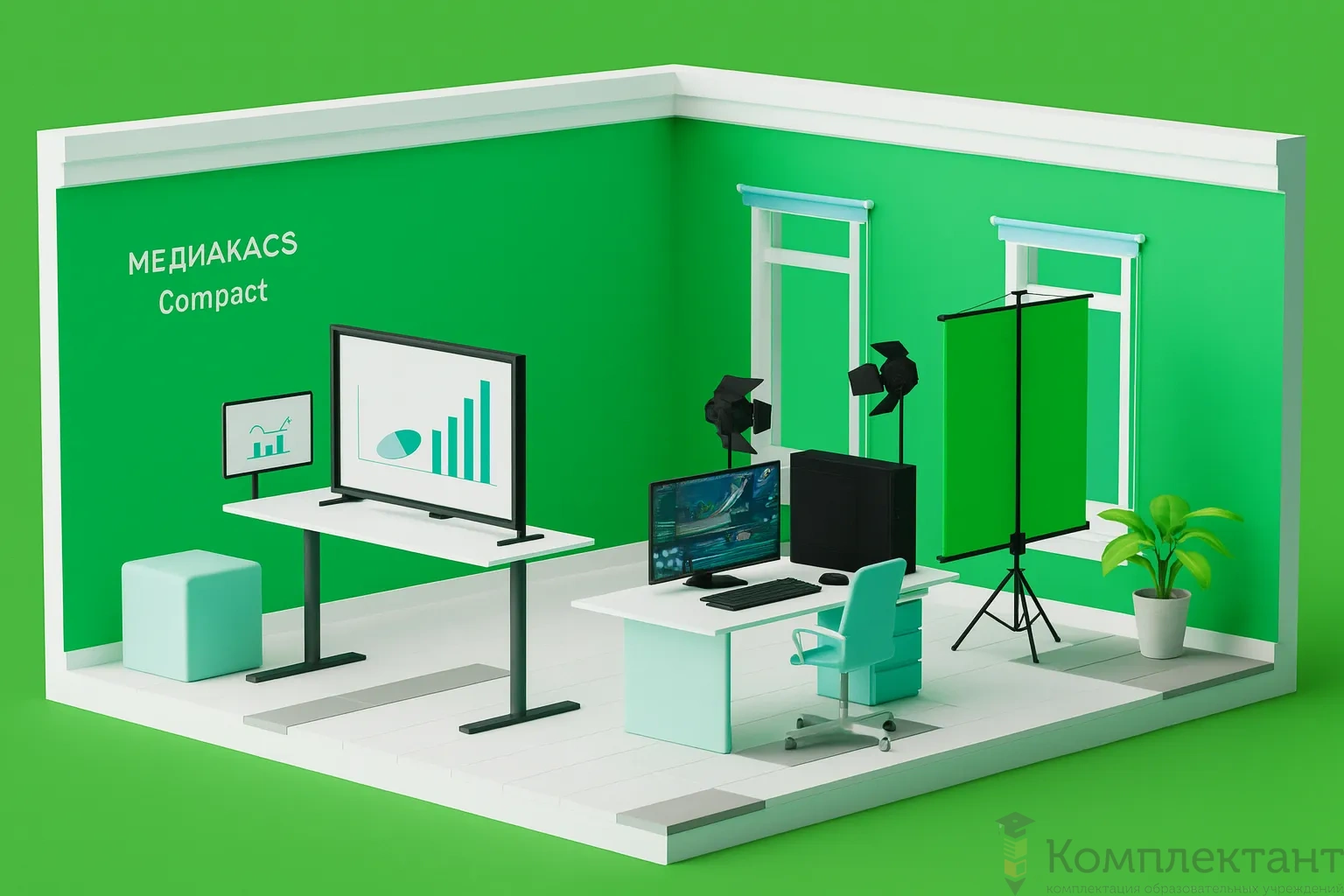 Школьный медиакласс — это комплекс мультимедийного оборудования для организации школьной телестудии и фотостудии. Он сочетает в себе всё необходимое для фото- и видеосъёмки, трансляций, звукозаписи, подкастинга и постпродакшна. Подходит для школьных проектов, внеклассной деятельности и предпрофессионального образования.