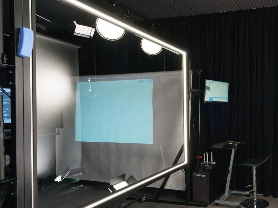 Студия Джалинга имеет всё необходимое оборудование для съёмки качественного видео, в некоторых комплектациях есть и дополнительное оборудование, которое помогает или облегчает запись. Телесуфлёр - это экран, на который выводится текст для спикера. Прямо как в выпусках новостей!