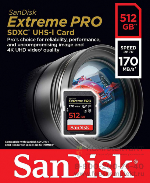 Карта памяти SanDisk Extreme Pro SDXC UHS Class 3 V30 170MB/s 512GB