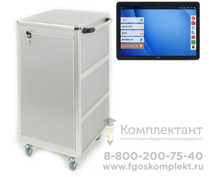 Школьная мобильная библиотека будет эффективно работать при наличии устройства для постоянной зарядки. В комплекте с планшетами стоит использовать компактную тележку с встроенными розетками и пространством для размещения планшетных компьютеров. Стандартные розетки с USB выходами подходят для подзарядки планшетов любых брендов с габаритами до 12 дюймов.