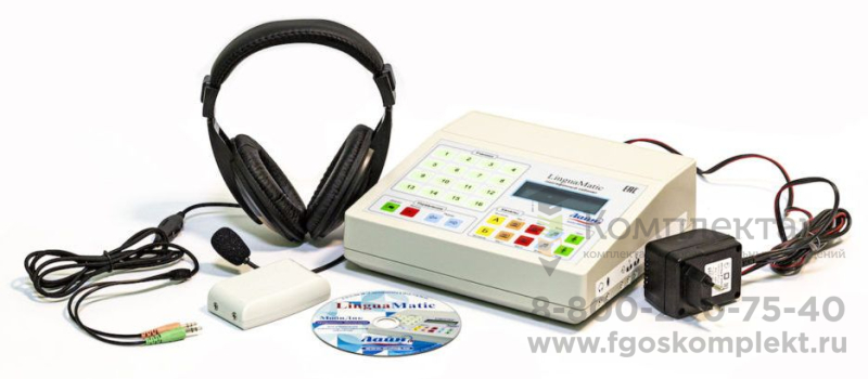 Комплект поставки: Пульт преподавателя LinguaMatic, Блок подключения учеников Диалог-М, Наушники с регулятором громкости, ПО MobiDIC для LinguaMatic