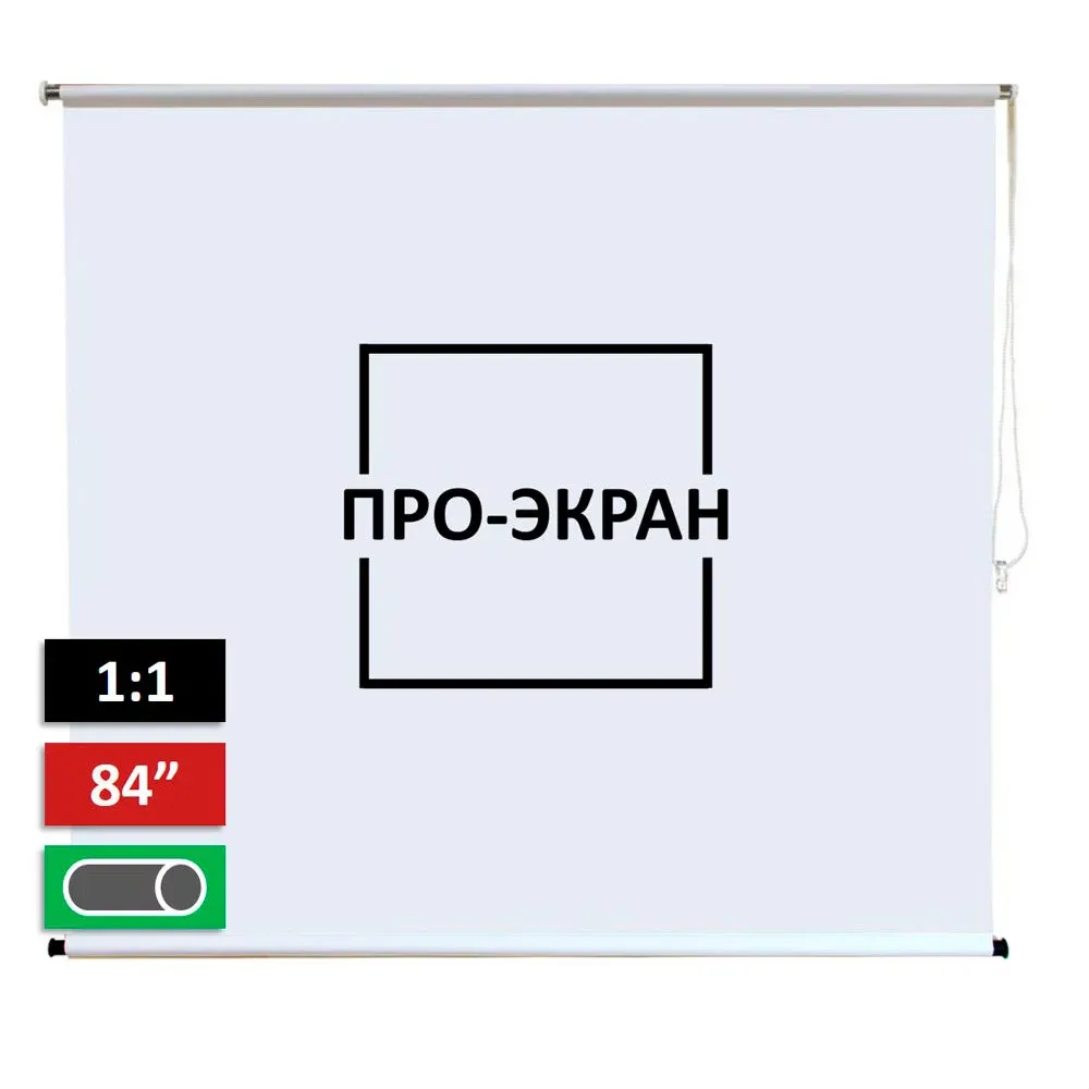 Рулонный экран для проектора ПРО-ЭКРАН 150х150 см (1:1), 84 дюймов
