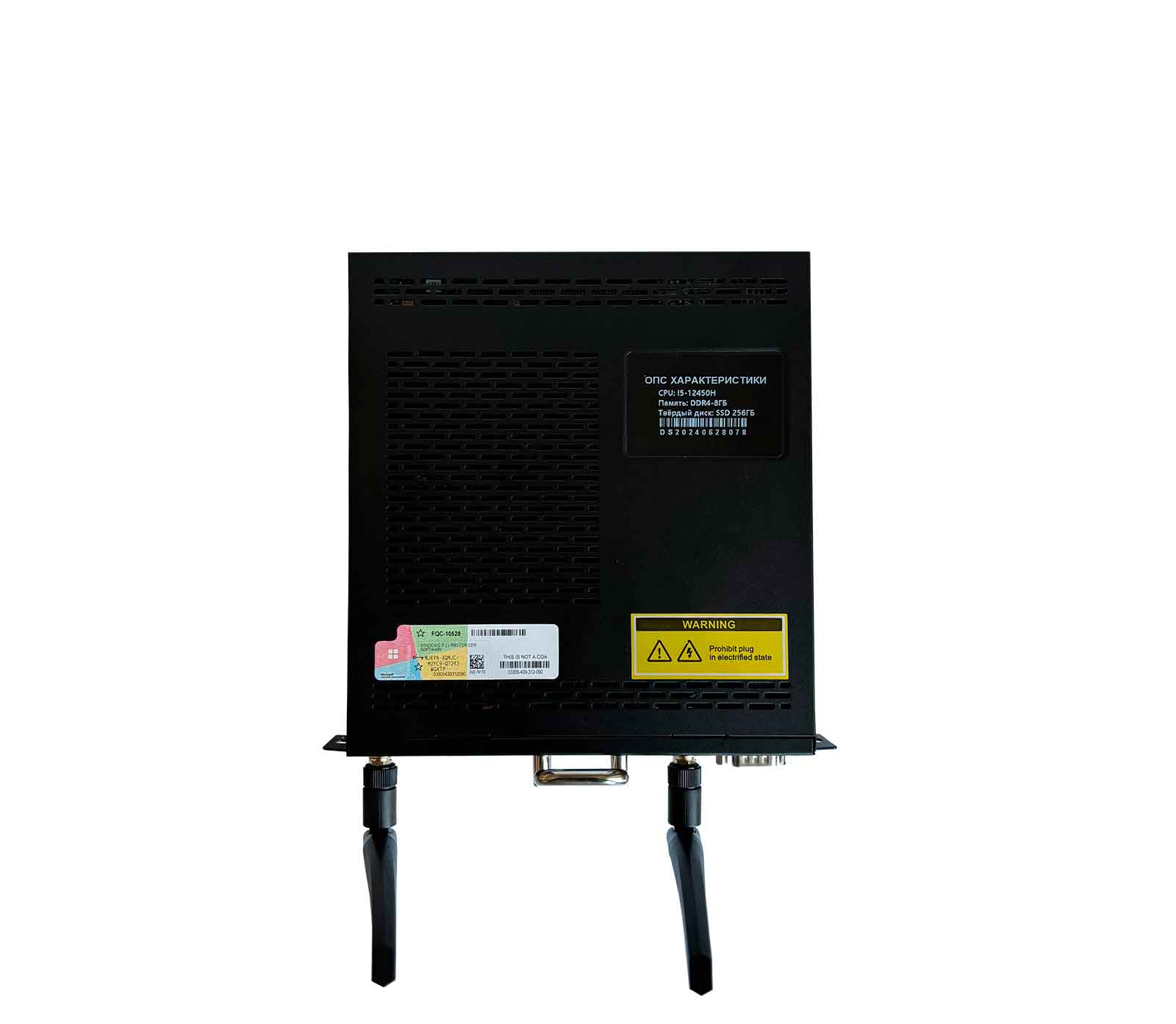 Display Port 1.4*1, HDMI 2.0*1, RS232*1, USB 2.0 (Type C)*1 (данные), USB 3.0 (Type A)*5, USB 2.0 (Type A)*1, RJ45*1, Микрофон вход*1, Линейный выход*1, Wi-Fi/BT антенны*2, Кнопка питания*1, Кнопка перезагрузки*1