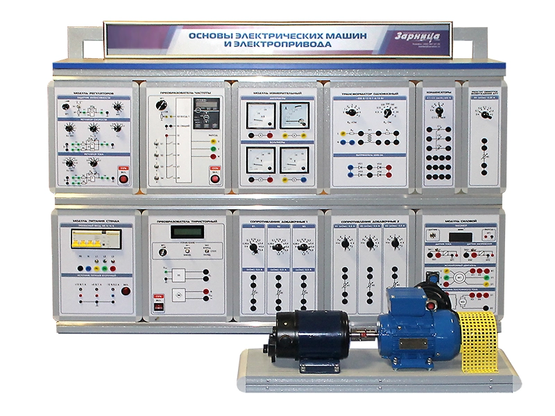 Комплект учебно-лабораторного оборудования "Основы электрических машин и электропривода" предназначен для проведения лабораторно-практических занятий по дисциплинам "Электромеханика" и "Основы электропривода", обеспечивает изучение двигателей постоянного тока, генераторов постоянного тока, трехфазных асинхронных двигателей с короткозамкнутым ротором, систем управления электроприводом.