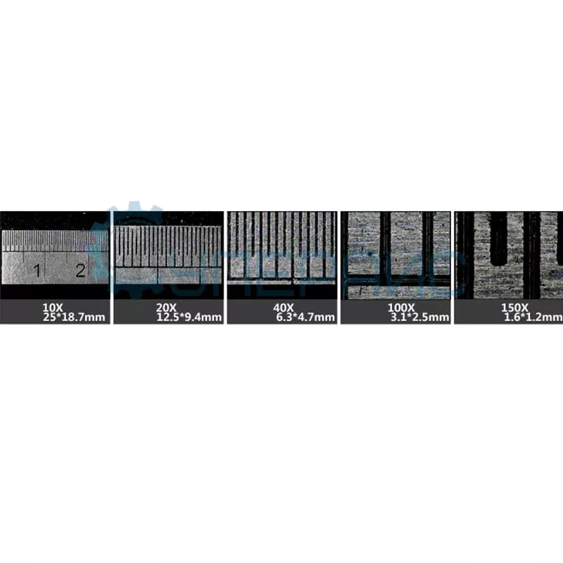 Видеомикроскоп с объективов C-mount предлагает диапазон увеличения: 6,9x с оптическим зумом 0,67–4,6x и цифровым 8–55 крат (при использовании встроенного 8-дюймового дисплея). Независимо от того, требуется ли вам детальное изучение поверхности или анализ внутренних структур, этот прибор предоставит вам оптимальный уровень увеличения.