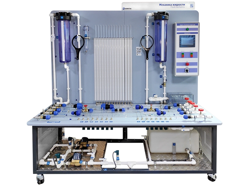 Комплект учебно-лабораторного оборудования (далее стенд) "Механика жидкости" предназначен для проведения лабораторных работ по курсу общей гидравлики. Стенд позволяет исследовать характеристики центробежных насосов, а также характеристики трубопроводов: определение потери напора по длине, коэффициентов сопротивления и трения, потери напора по длине, коэффициентов сопротивления и трения, потери напора на местном сопротивлении – диафрагме, балансировочном клапане, внезапном расширении и сужении, а также изучать и демонстрировать уравнение Бернулли. Оборудование может применяться в учреждениях среднего и высшего профессионального образования для получения базовых и углубленных знаний и навыков по направлениям "Гидродинамика", "Механика жидкости и газа".
