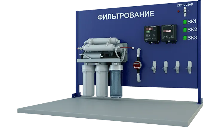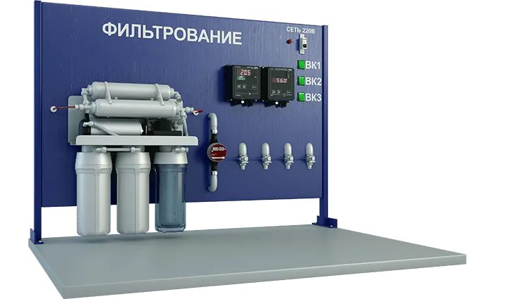 Лабораторная установка для изучения многоступенчатой фильтрации позволяет наглядно исследовать процессы очистки воды, включая осаждение, адсорбцию и мембранную фильтрацию. Установка предназначена для учебных заведений и научных исследований, способствует глубокому пониманию принципов работы современных систем водоочистки.