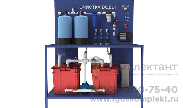 Лабораторная установка для изучения очистки воды сорбционным методом (рамное исполнение) позволяет проводить исследования и эксперименты, наглядно демонстрируя процесс удаления загрязнений из воды с помощью сорбентов. Установка предназначена для образовательных учреждений и оснащена всем необходимым оборудованием для проведения практических занятий.