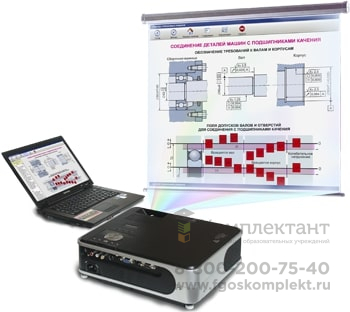 Комплекс оборудования для демонстрации дидактического материала в кабинете до 35 человек. Состав: проектор, экран (150х150 см), ноутбук, дидактическое ПО по курсам: