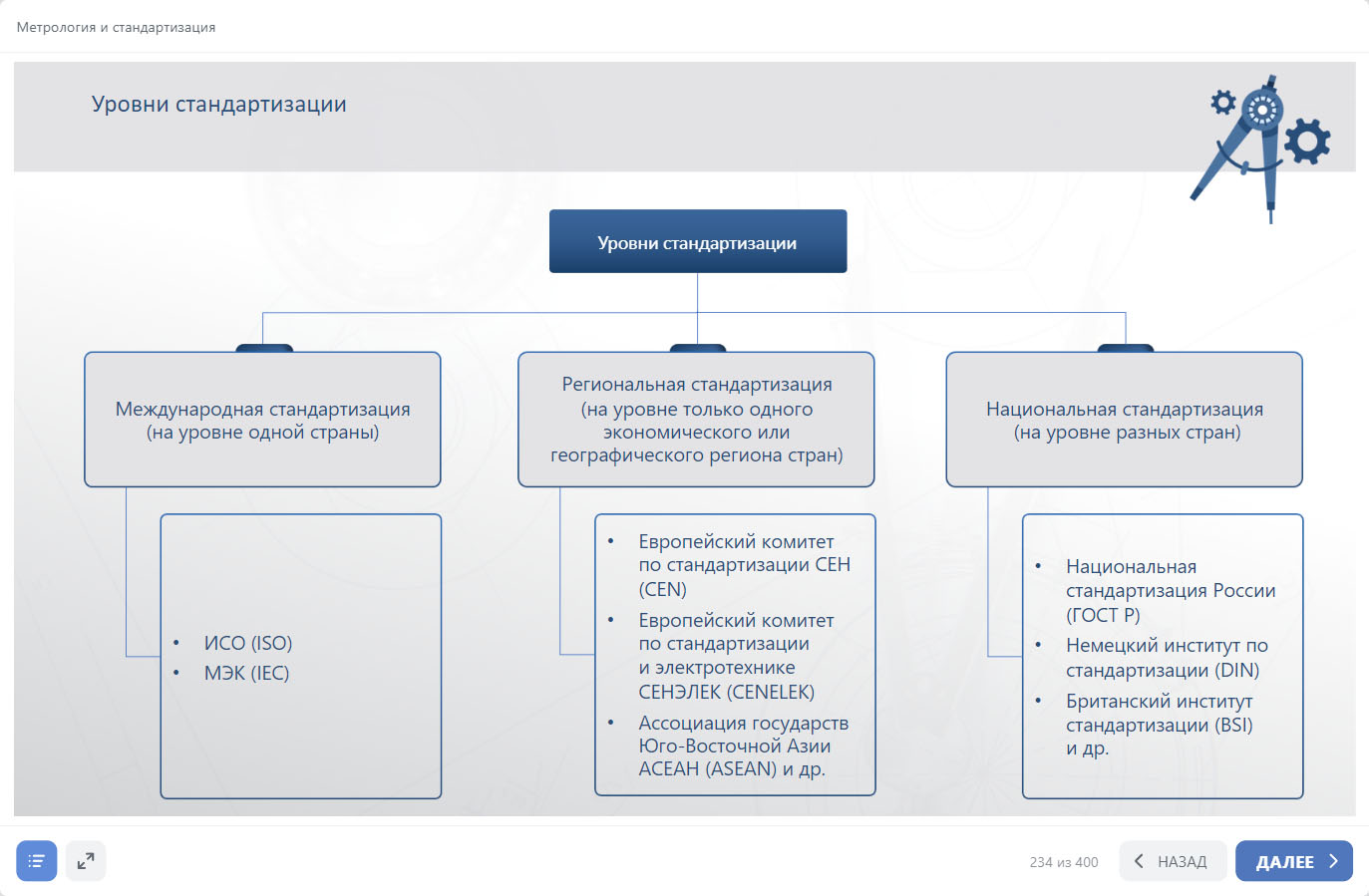 • Внесены актуальные данные о международных и региональных организациях по стандартизации, органах и службах стандартизации в РФ, документах по стандартизации.