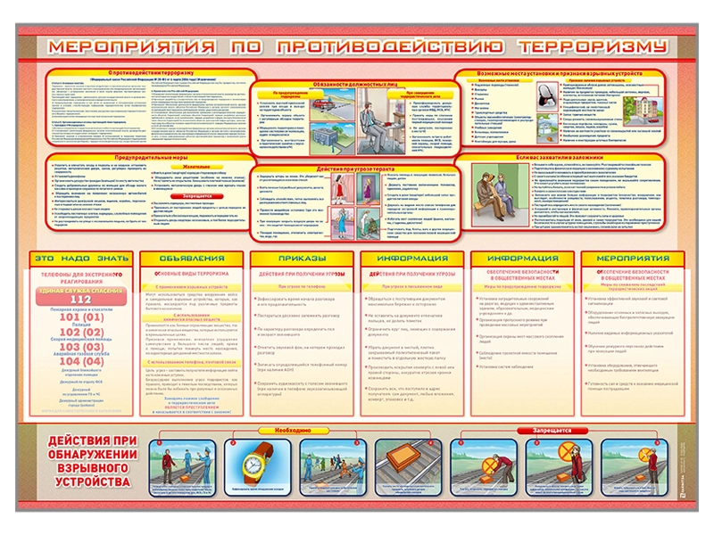 Стенд-уголок "Мероприятия по противодействию терроризму" предназначен для общеобразовательных и административных учреждений, для наглядного и красочного отображения основной информации о мерах по противодействию терроризму.