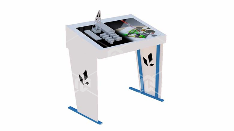 Стационарный интерактивный макет «Буровая установка» должен позволять изучать последовательность и логистику технологических процессов буровой установки с возможностью сенсорного ввода и управления, отображать трехмерные модели выбранного элемента оборудования на дисплее макета. В макетах должны быть реализованы элементы, аналогично ПО комплекса «Бурение нефтегазовых скважин», в электронном виде, так и с возможностью дополнения физической частью (наглядный макет), выполненной из легкообрабатываемых материалов.
