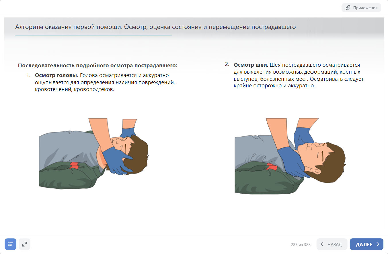 7.1. Алгоритм оказания первой помощи. Осмотр, оценка состояния и перемещение пострадавшего