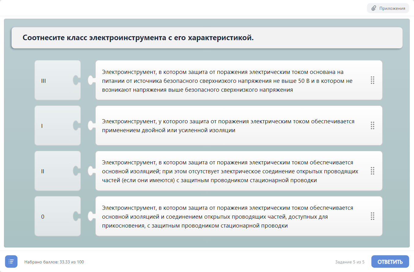 Индивидуальный итоговый тест для каждого пользователя – при каждом входе в программу из 1069 базовых вопросов методом случайного выбора формируется тест с неповторимой комбинацией заданий. По окончании тестирования показывается отчет с указанием количества баллов, итоговой оценкой и временем прохождения теста.