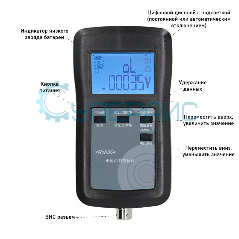 Измеритель внутреннего сопротивления аккумуляторов YAOREA YR1035+ с дисплеем