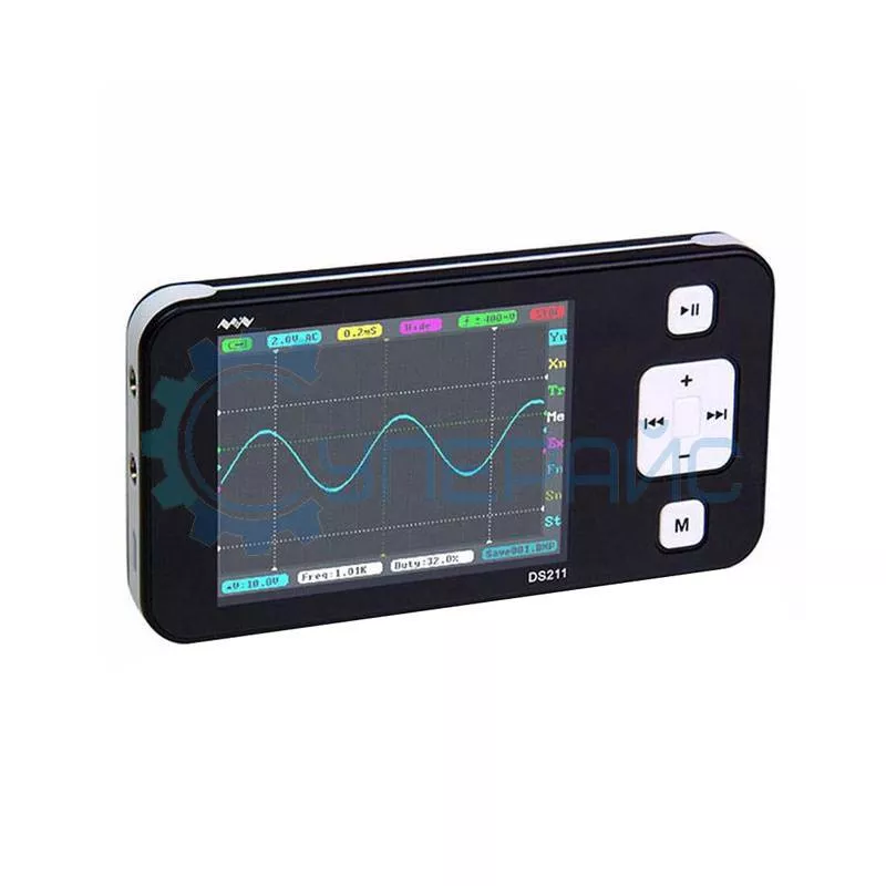 Minidso DS211 - карманный цифровой осциллограф, предназначенный для исследования формы электрических сигналов. Благодаря небольшим размерам, наличию цветного LCD дисплея с разрешением 320 х 240 и большому функционалу, прибор является очень удачным решением для выполнения различных задач по отладке любых электронных систем и с легкостью заменит вам многие громоздкие измерительные приборы. Важной особенностью данной модели является наличие встроенного генератора сигналов, порождающего синусоидальный, треугольный и пилообразный формы сигналов. Стоит отметить, что данный осциллограф оснащен 8 Мб внутренней памяти, благодаря чему вы можете сохранить полученные результаты измерений на компьютере для дальнейшей обработки. Высокопроизводительный и удобный осциллограф Nano DS211, с полосой пропускания до 200 кГц и доступной ценой, имеет низкое энергопотребление и способен обеспечивать до двух часов автономной работы.