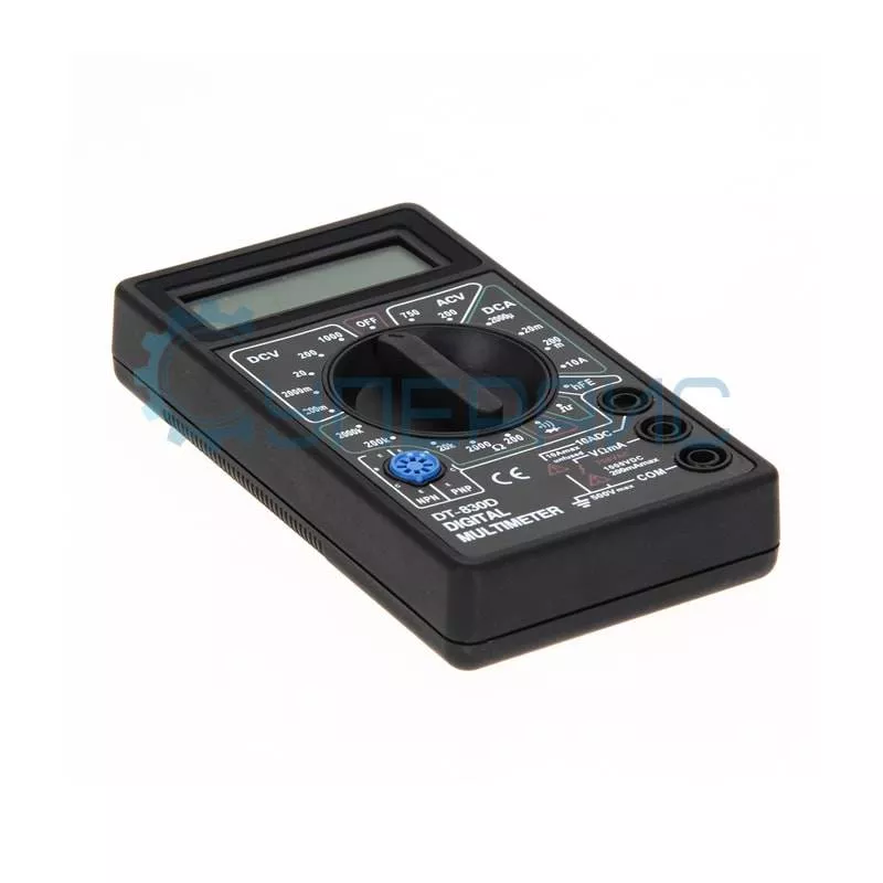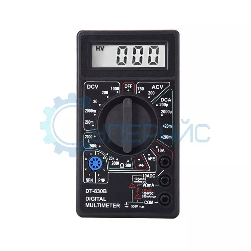 Мультиметр DT-830B часто называют ампервольтомметром, потому что он объединяет в себе несколько приборов для полноценной диагностики: вольтметр, амперметр, омметр, тестер диодов и транзисторов. Это делает его незаменимым и универсальным устройством для измерений и тестирования на работоспособность не только обычной батарейки, но и сложной электронной схемы. Цифровой мультиметр DT-830B специально предназначают для проверки параметров, таких как постоянный и переменный ток, сопротивление, напряжение в бытовых условиях, мастерских и на производстве.