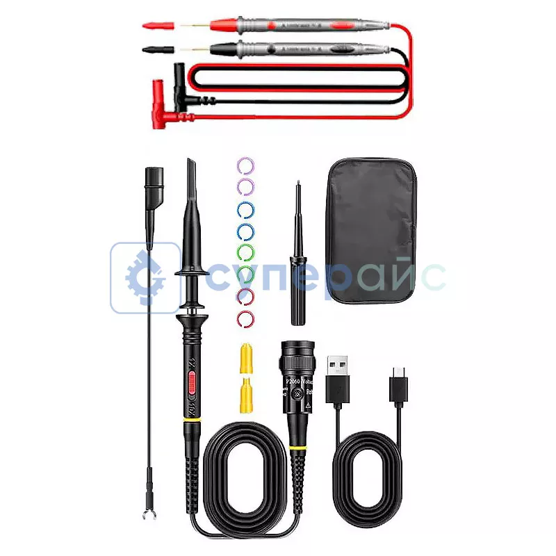 тестовый щуп - 3 шт; насадка - 2 шт; прокладка - 8 шт; отвёртка - 1 шт; кабель питания - 1 шт; чехол - 1 шт; руководство пользователя - 1 шт |