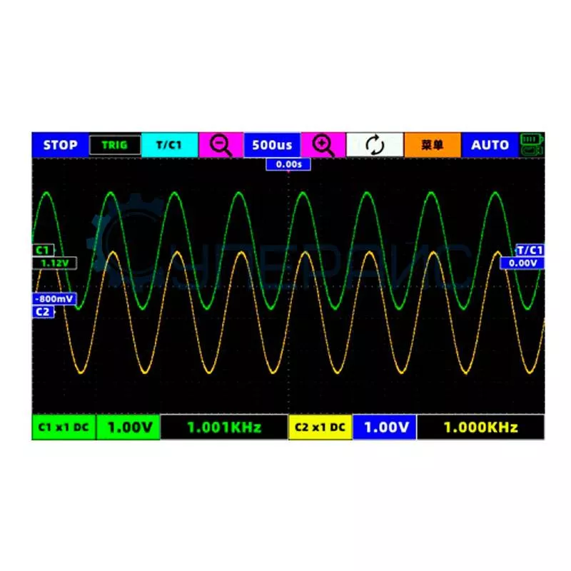 Измерения 13 видов измерения (частота, период, амплитуда, максимум, минимум, среднее, среднеквадратичное, положительный рабочий цикл, отрицательный рабочий цикл, положительная ширина импульса, отрицательная ширина импульса, время нарастания, время падения)