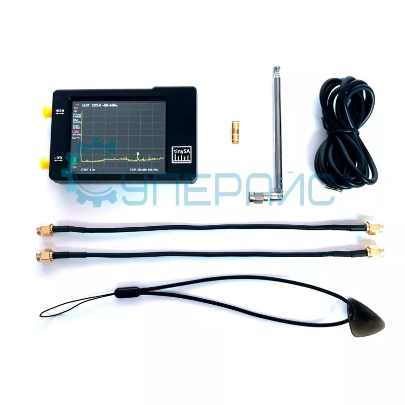 Комплектация | портативный спектроанализатор TinySA – 1 шт кабель SMA – 2 шт антенна с разъемом SMA – 1 шт кабель USB type-C – 1 шт |