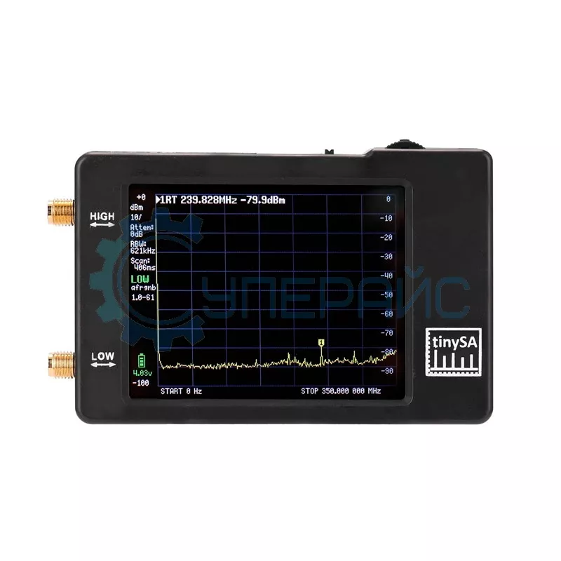 TinySA - это анализатор спектра, применяемый для таких областей как радио, телекоммуникации, научные исследования и др. Прибор производит измерения на большинстве радиочастот. Яркий и чёткий дисплей с разрешением 320 на 240 пикселей отобразит широкий диапазон частот от 100 кГц до 960 МГц.