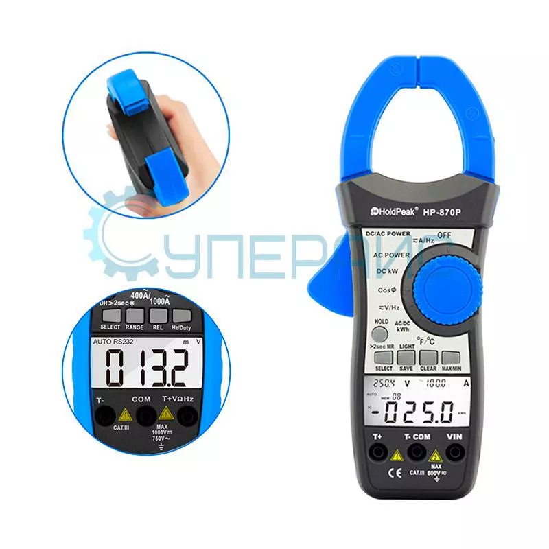 Токовые клещи-ваттметр AC/DC HoldPeak HP-870P