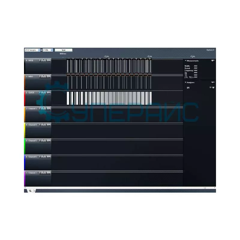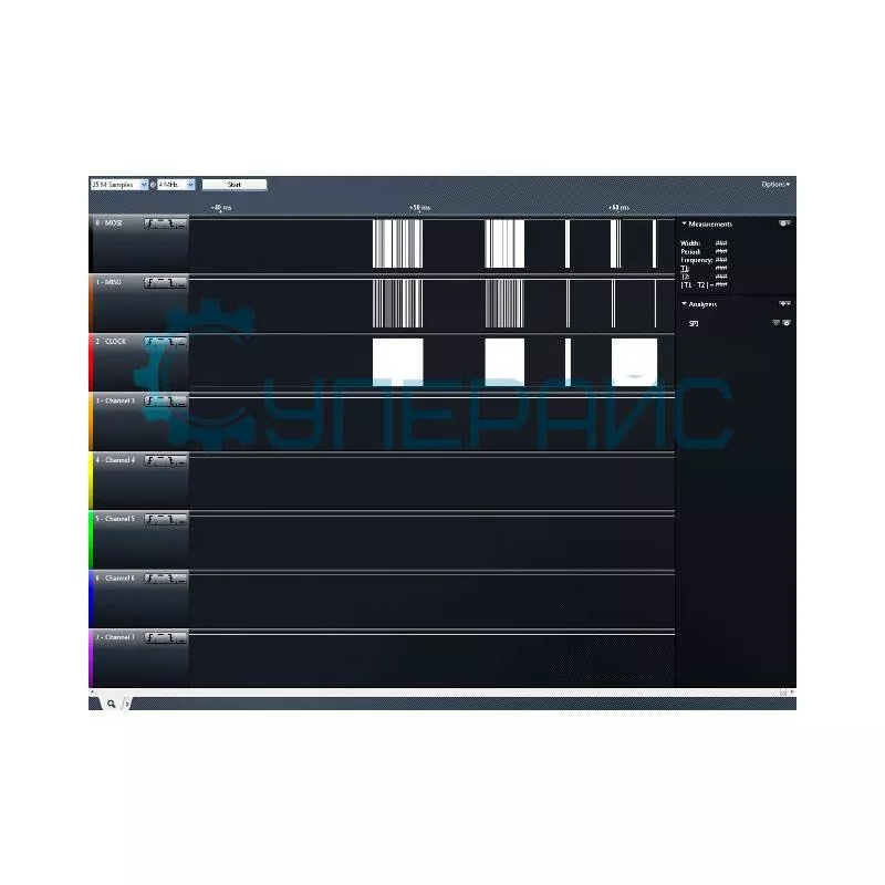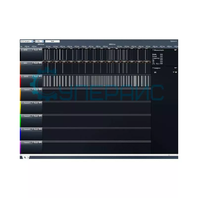 Анализатор адаптирован для профессиональных задач: он поддерживает 17 фиксированных частот (от 100 МГц до 25 кГц) и оснащен многоканальным комбинированным триггером. Это позволяет точно настраивать условия захвата сигналов, будь то высокоскоростные интерфейсы или низкочастотные протоколы.