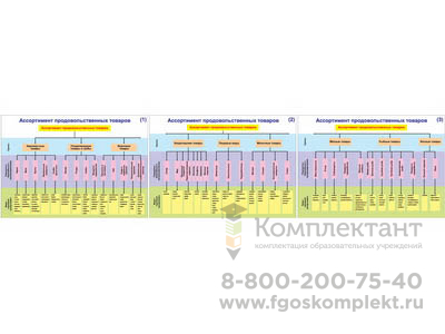 Плакаты ПРОФТЕХ Ассортимент продовольственных товаров (3 пл, винил, 70х100) – наглядное пособие для изучения различных видов продуктов. Идеально подходит для школ, колледжей и профессионального обучения.