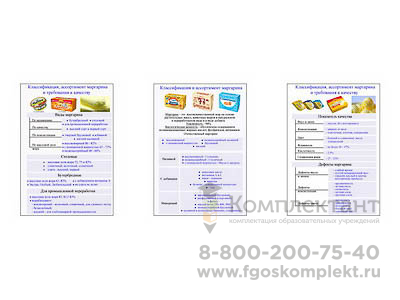 Плакаты ПРОФТЕХ Классификация, ассортимент маргарина, требования к качеству (3 пл, винил, 70х100)