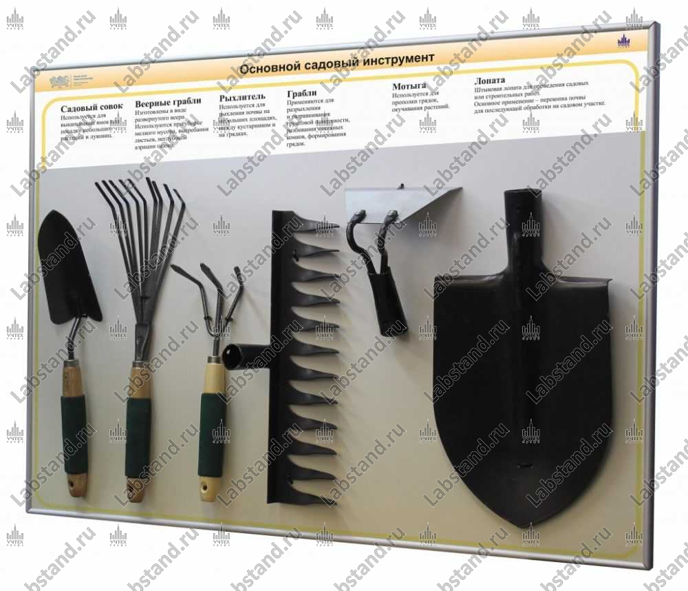 Стенд-планшет предназначен для изучения конструкции и основ использования основного садового инструмента.