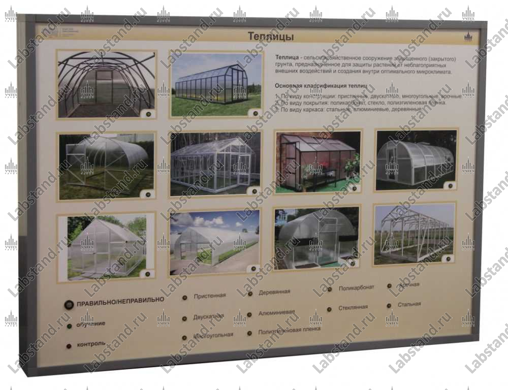 Назначение: Стенд-планшет предназначен для изучения видов теплиц.
