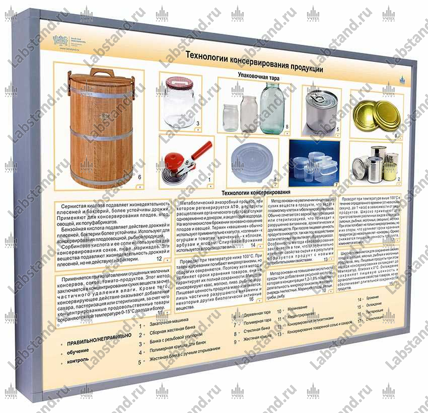 Назначение: Стенд-планшет предназначен для изучения процесса хранения и консервирования овощей.